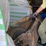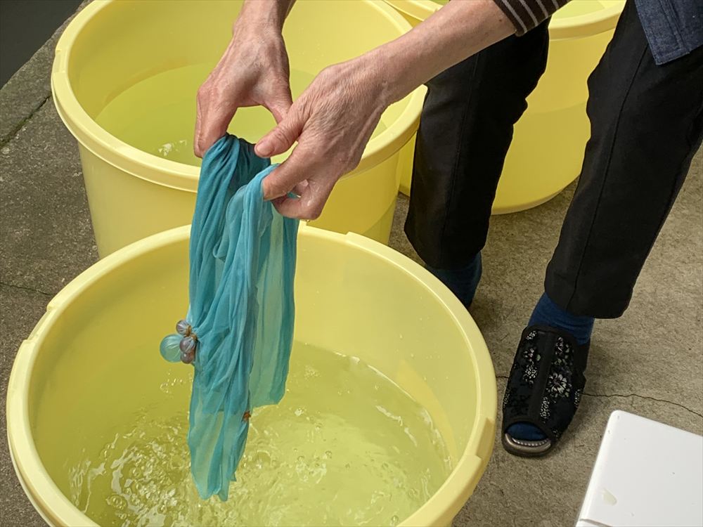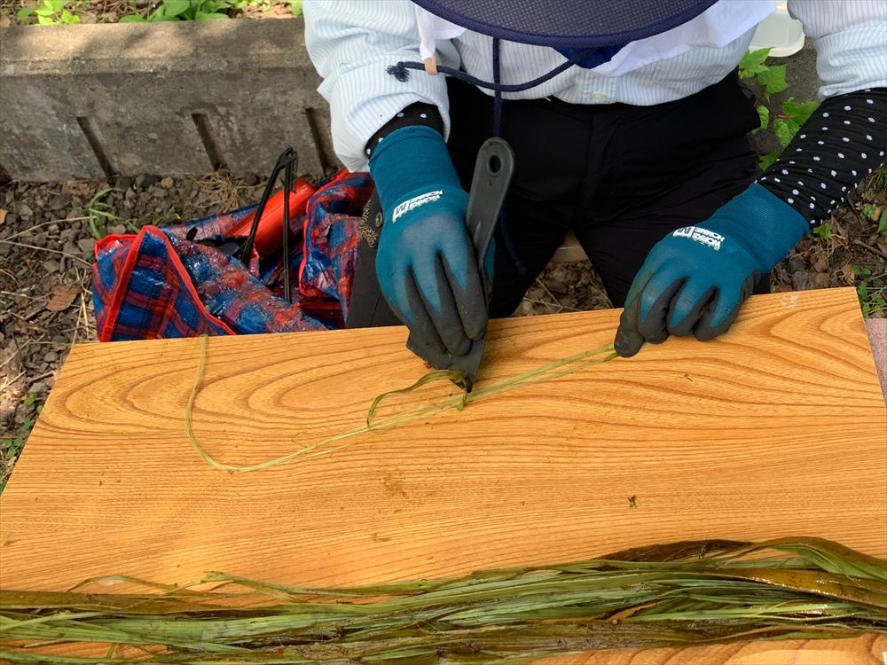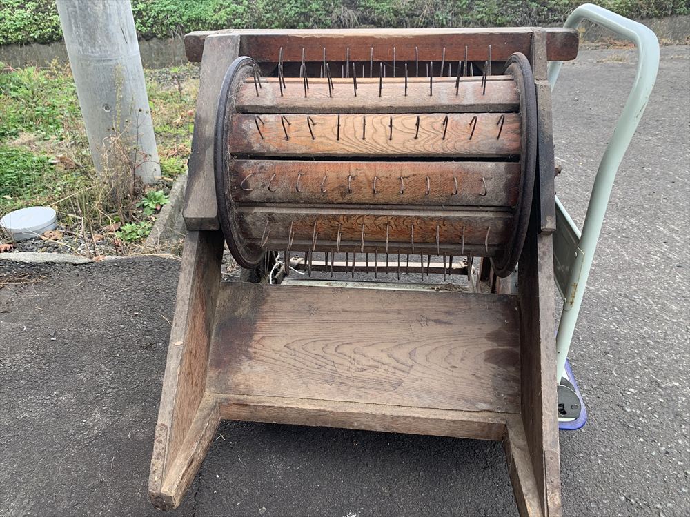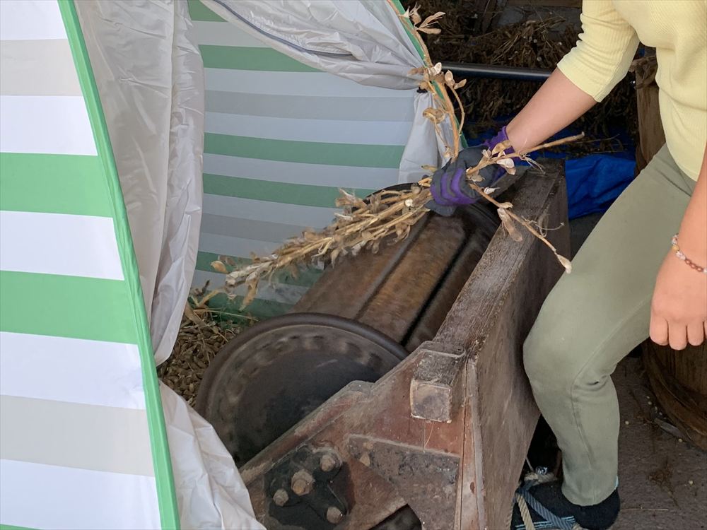 時には、昭和レトロな道具を使った、収穫後の作業も。